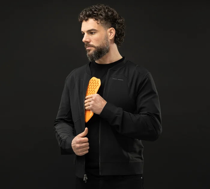 Unser H-D Layering System bietet Schutz und Funktionalität durch bis zu drei Schichten und umfasst eine modulare 1-2-3-Produktlinie von einem Base Layer und von verschiedenen Mid Layern und Outer Layern, die Motorradfahrer und Motorradfahrerinnen zu unterschiedlichen Schutz- und Styling-Optionen kombinieren können. Als erste Schicht des H-D Layering Systems dient das Armored Base Layer aus einem robusten Jersey aus Nylon und Elastan mit Mesh-Einsätzen, die die Luftzirkulation während der Fahrt fördern, sowie mit D3O Ghost Protektoren an Schultern, Ellbogen, Brust und Rücken, die hervorragende Stoßdämpfung bei gleichzeitiger Atmungsaktivität gewährleisten. Der dadurch erzielte Aufprallschutz lässt sich ergänzen um Schutz vor Wind und Kälte durch unser Layering System Windproof Mid-Layer (98126-23VM) oder unser Layering System Lightweight Mid-Layer (98128-23VM). Der umfassende Schutz der Kombination lässt sich komplettieren durch ein abriebfestes Outer Layer wie unsere H-D Layering System Trucker Motorradjacke (98124-23VM), die H-D Layering System Bomber Motorradjacke (98125-23VM), die H-D Layering System Café Racer Lederjacke (98015-23VM) oder die H-D Layering System Captains Lederjacke (98022-23VM).