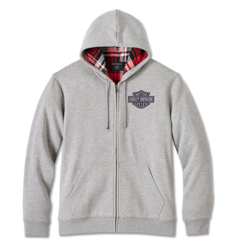 Harley-Davidson Zip Hoodie Bar & Shield Karo Futter, grau meliert
